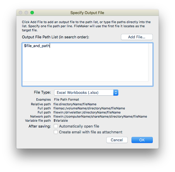 All can come together in a ‘Set Variable’ script step for $file_and_path (I guess $path_and_file would have been a better name) with the following calculation or something similar.