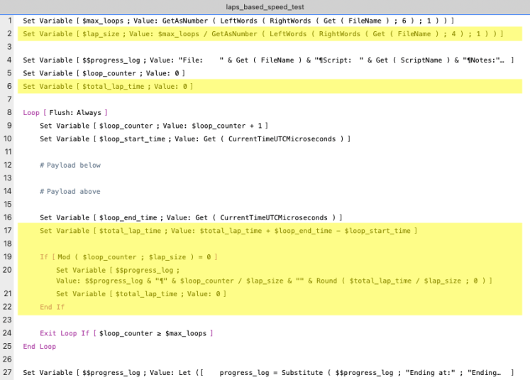 Baseline script v2 was named laps_based_speed_test and programmed as follows. The highlighted areas show the essential difference with the minimal_speed_test script used as v1.