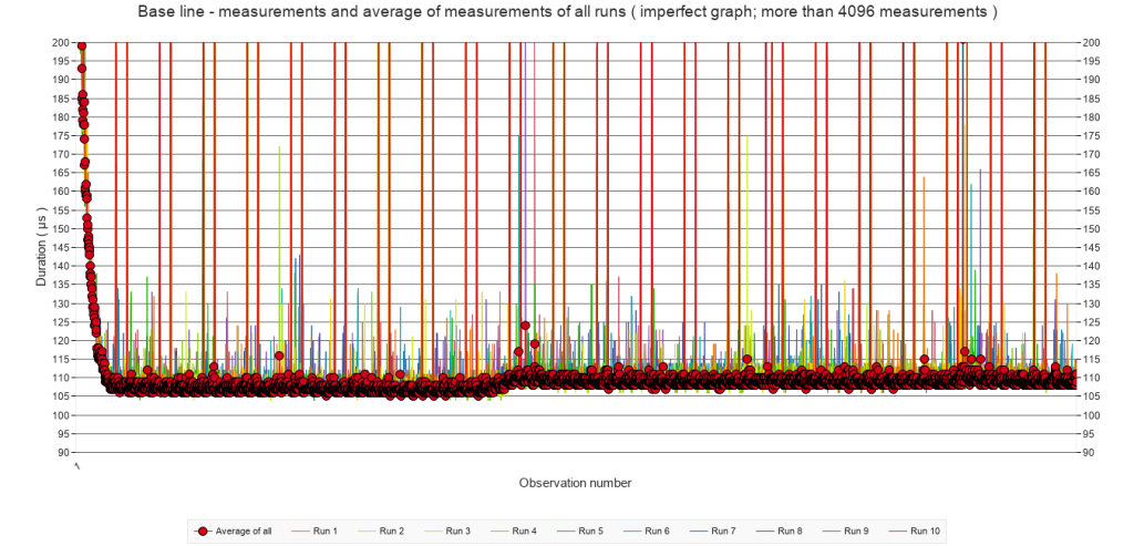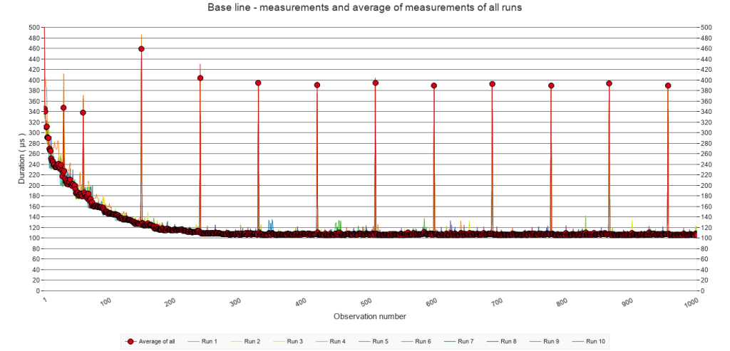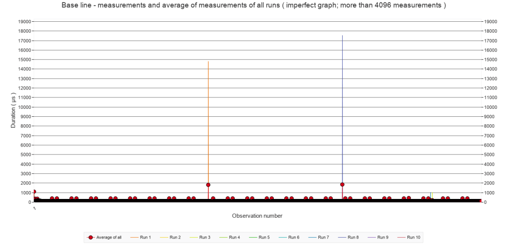 All test runs have irregular spikes, but also spikes that appear during the exact same calls at regular intervals. I have no explanation for these spikes. If you do have one, then please contact me.